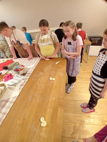Velkým tématem pro nás byla postní doba. Dozvěděli jsme se, proč se dříve lidé v jídle omezovali a jaký význam měly jednotlivé postní neděle s jejich zvláštními názvy (od Černé až po Květnou). A protože nejlepší je si vše vyzkoušet v praxi, došlo i na netradiční ochutnávku. Měli jsme možnost zkusit pučálku – pokrm z naklíčeného a opraženého hrachu. Také jsme zjistili, co je to „družebník“ (pečivo pro družebnou neděli) a jakou roli hrál při námluvách.